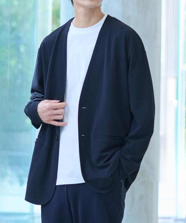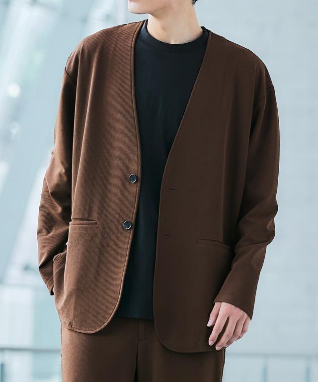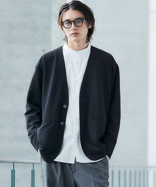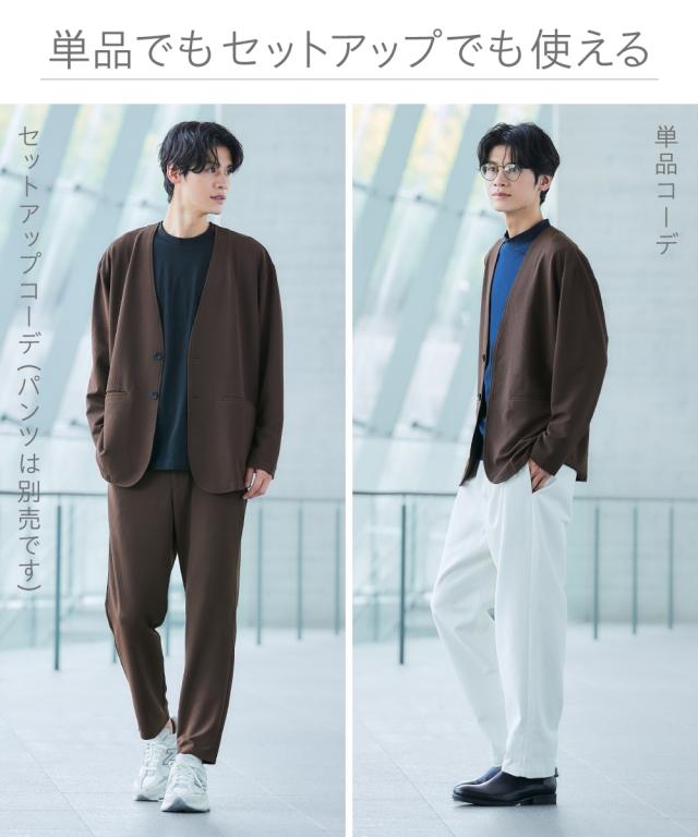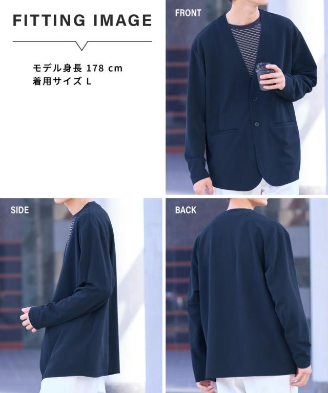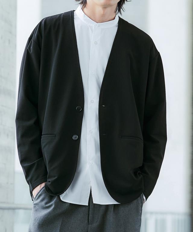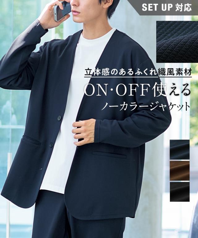 ジャケット アウター メンズ ふくれ織風 カットソー ノーカラー セットアップ 可能 ビッグ ラージ 洗える ウォッシャブル 3L〜10L