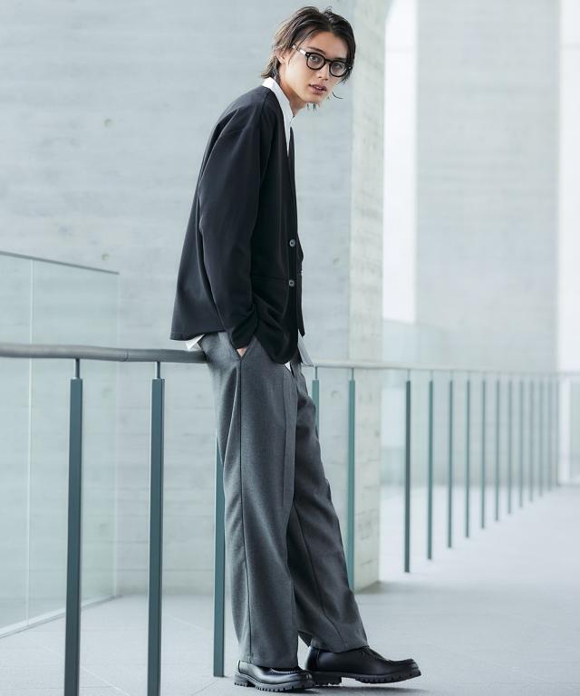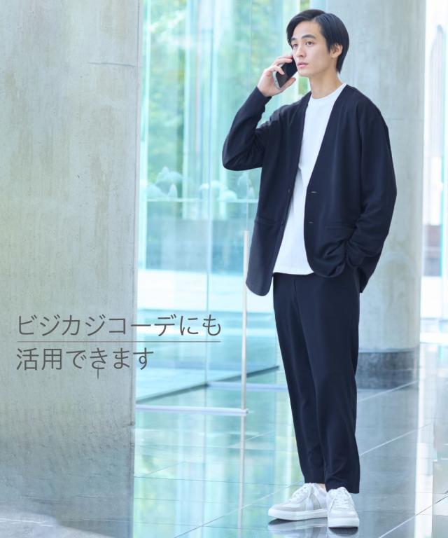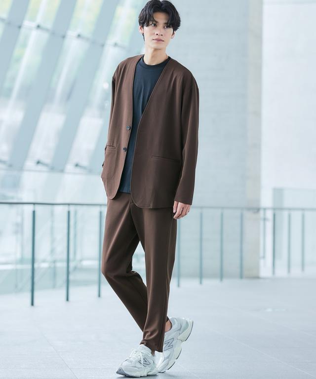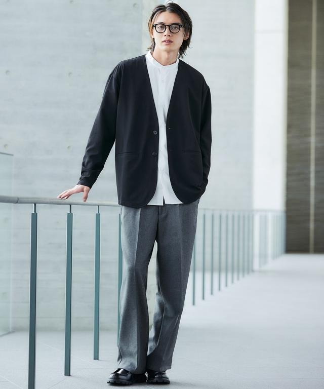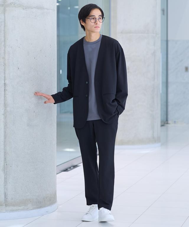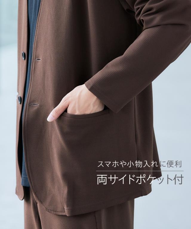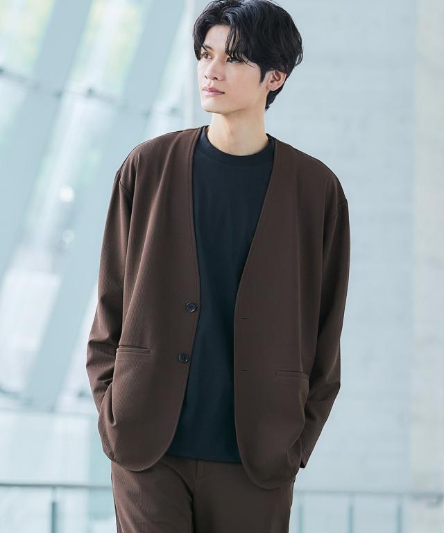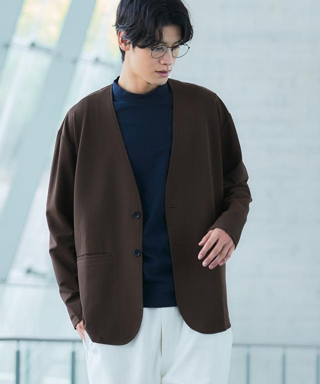 ジャケット アウター メンズ ふくれ織風 カットソー ノーカラー セットアップ 可能 ビッグ ラージ 洗える ウォッシャブル 3L〜10L