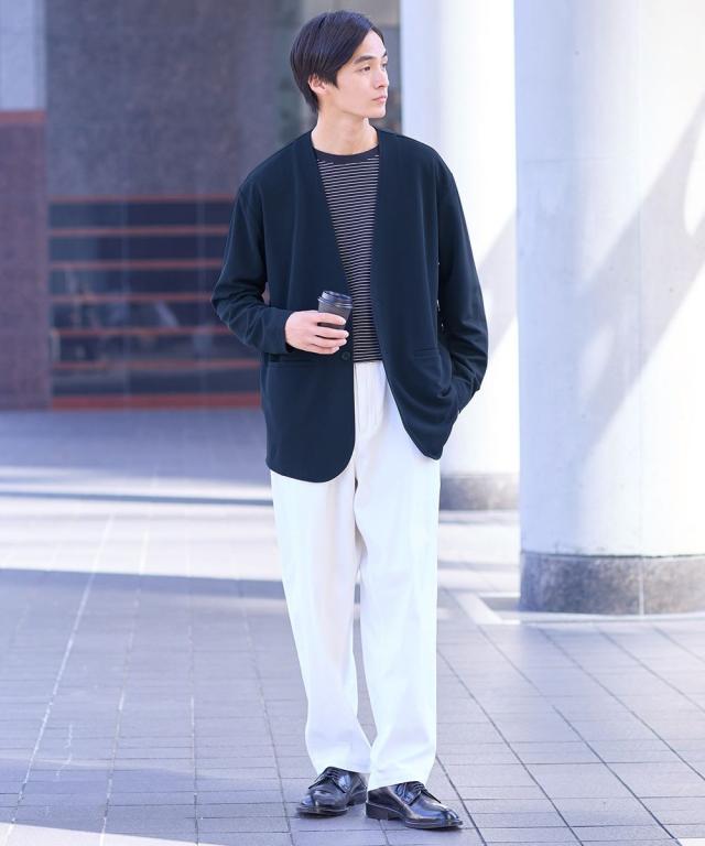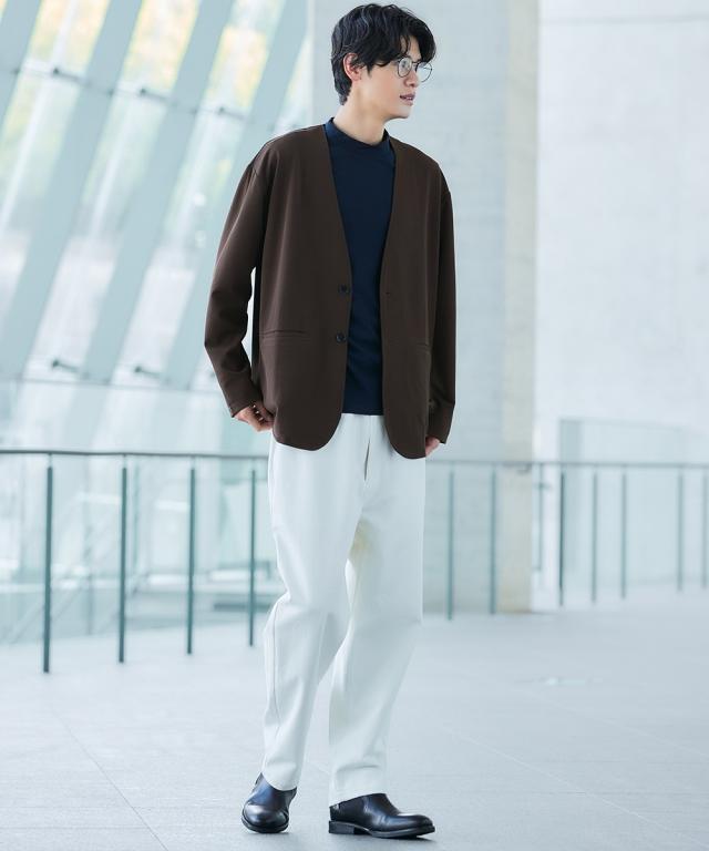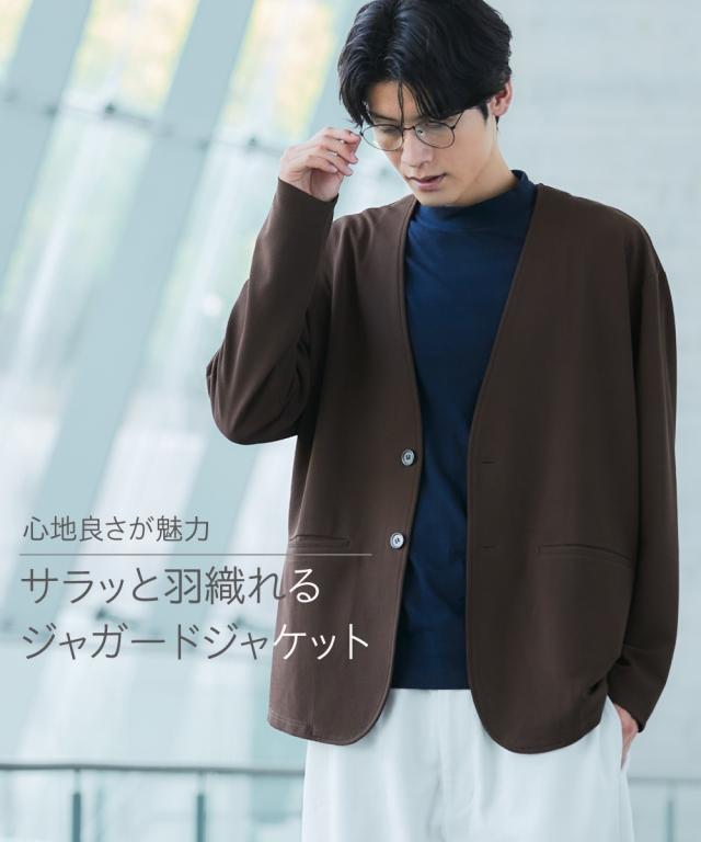 サラッと肌離れのよい、凹凸感のあるふくれジャガード素材が特長。 ほどよい伸び感があり、快適な着心地のノーカラージャケットです。 同素材のパンツと合わせてセットアップでのコーディネートも楽しめます。 大きいサイズも展開しております。(M/L/LL/3L/4L/5L/6L/8L/10Lサイズ) ■デザイン 凹凸感のあるジャガード素材で動きも楽ちん。 ■素材 表情のあるふくれジャガードはカットソー素材の為、どんな動きにもフィット! ■おすすめのおしゃれスタイリング きれいめビジカジスタイルやカジュアルシーンにも着回し可能。