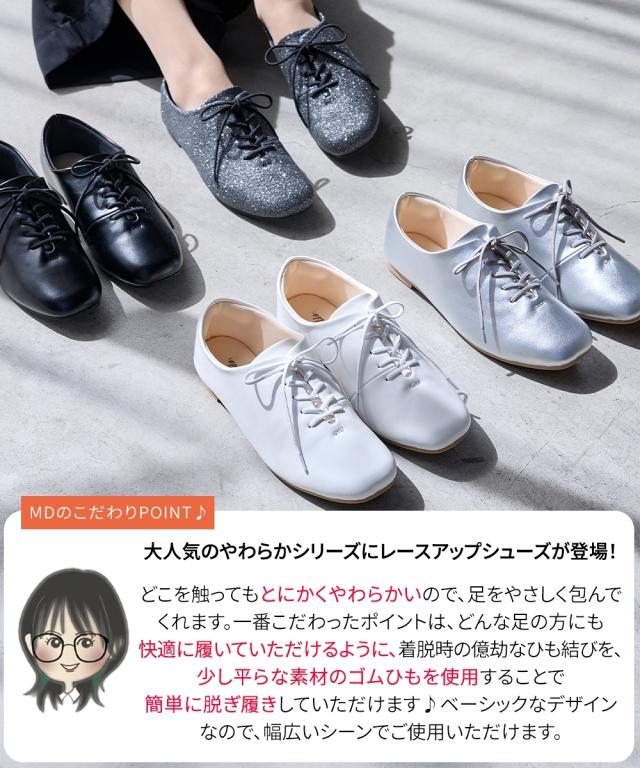 【ゆったり幅広】やわらかレースアップシューズ(低反発中敷)(ワイズ4E)