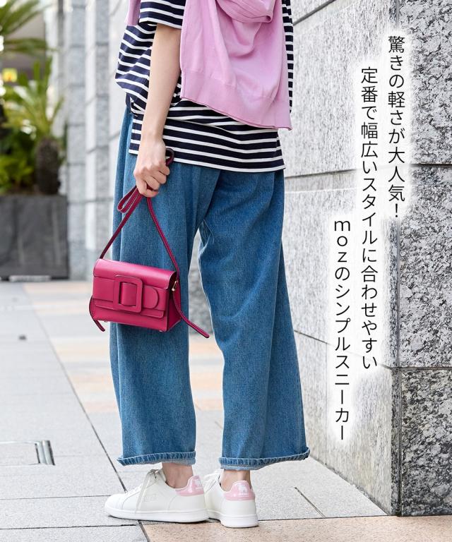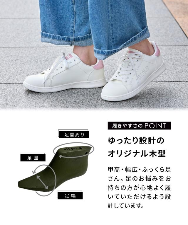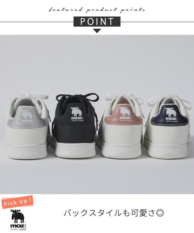 大きいサイズ レディース ゆったり幅広 moz モズ 軽量 レース アップ コートスニーカー ワイズ4E 靴 シューズ 23.5/24/24.5cm
