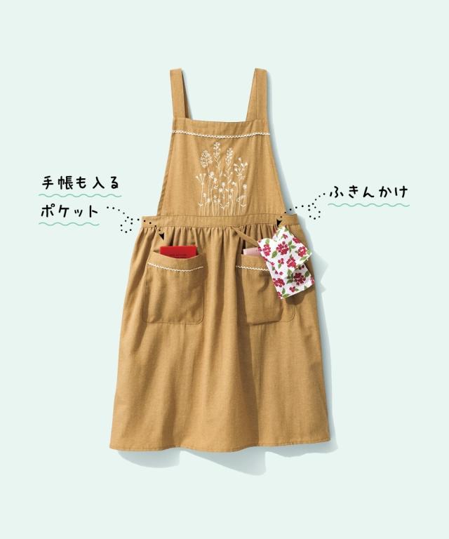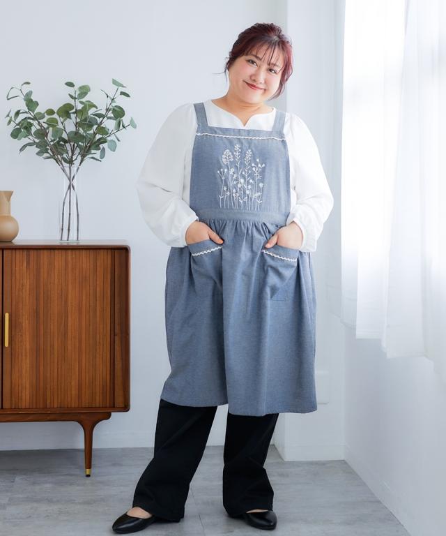 大きいサイズ 刺しゅうポイントエプロン