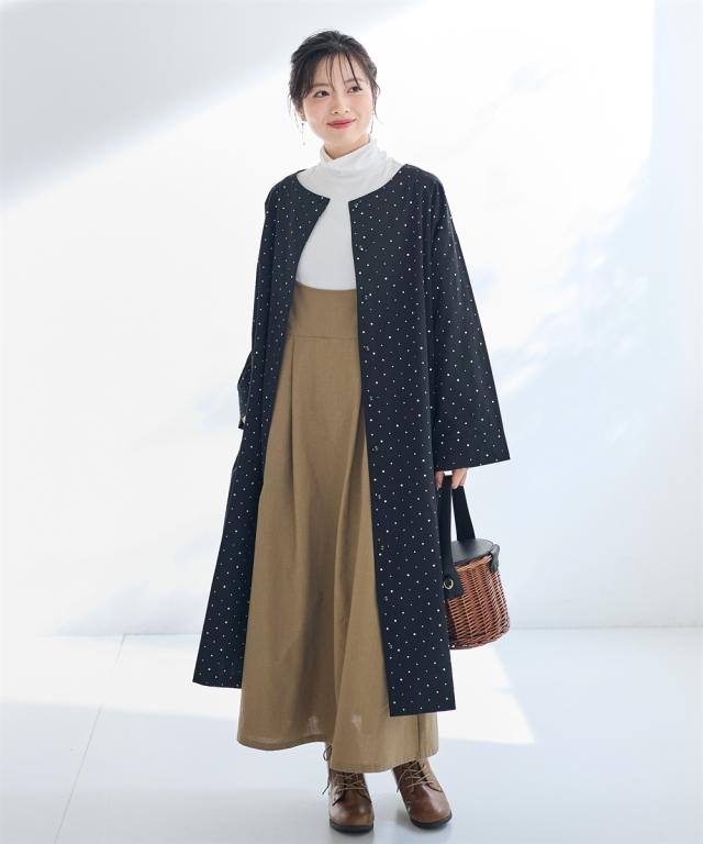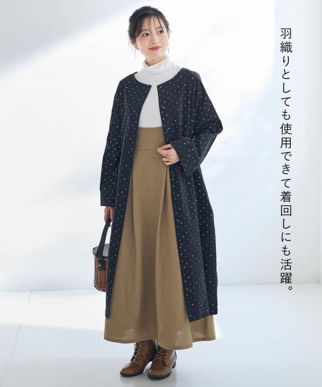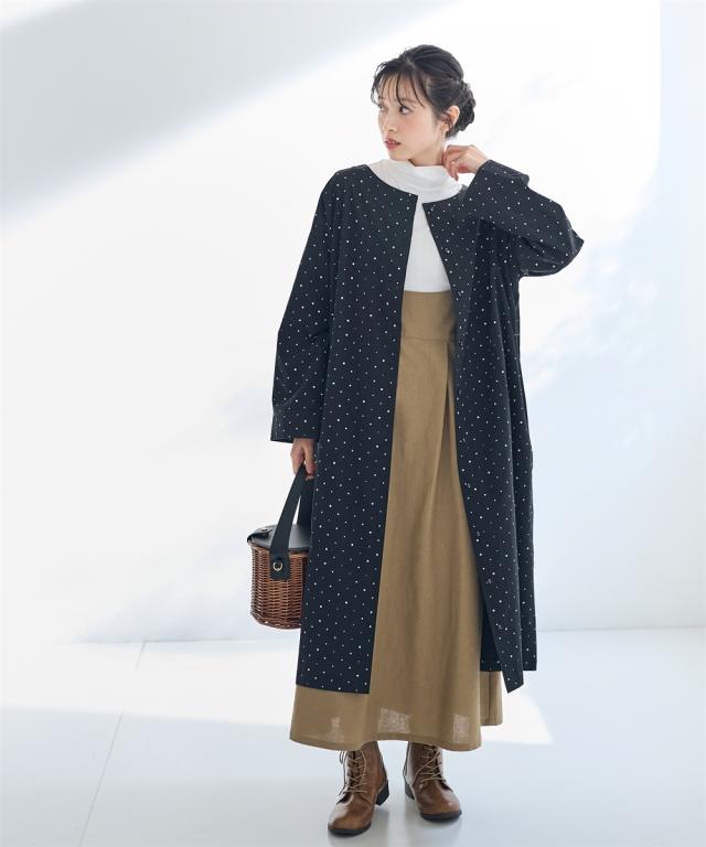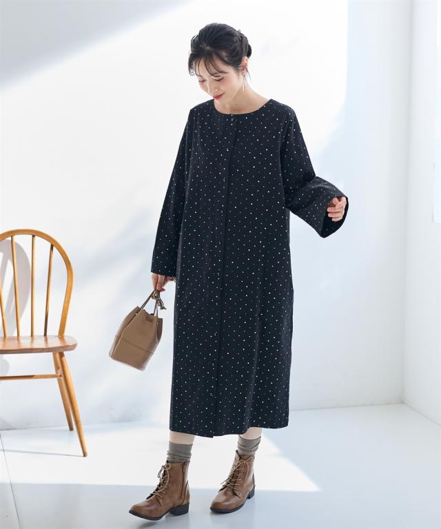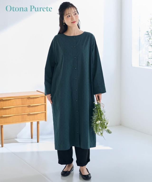 大きいサイズ 綿100%ドットプリントコートワンピース【Otona Purete】