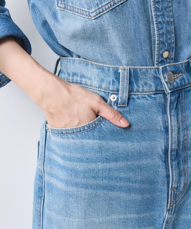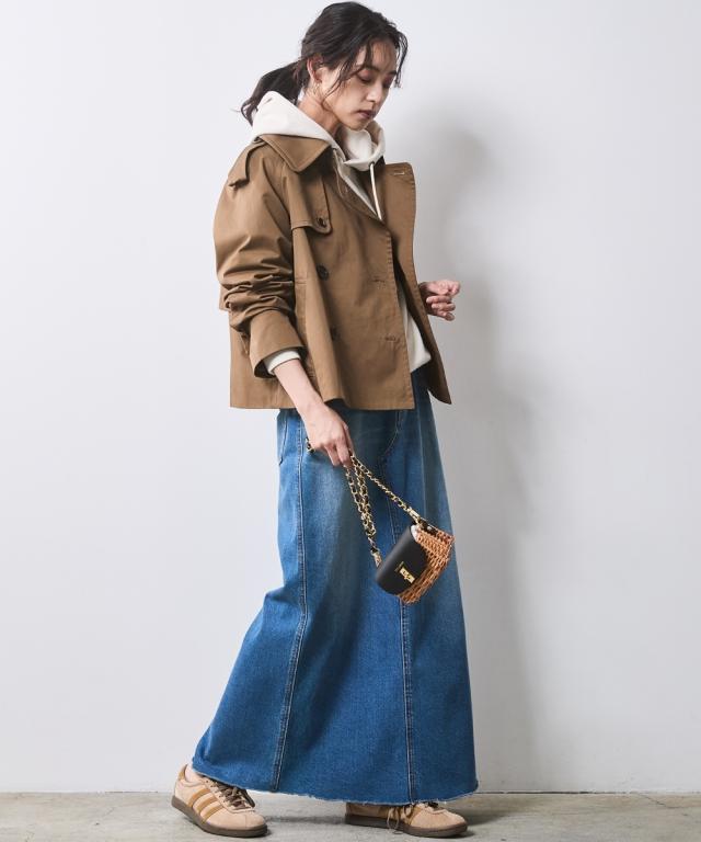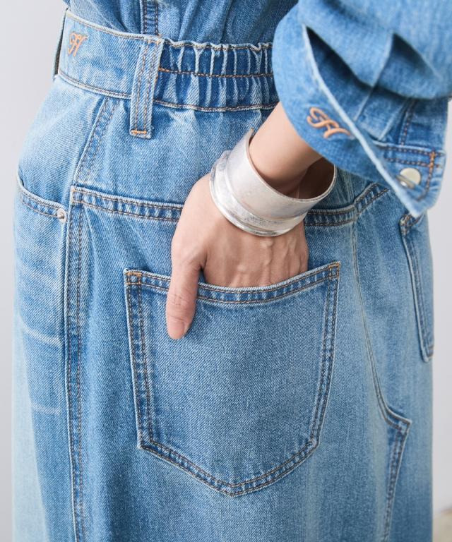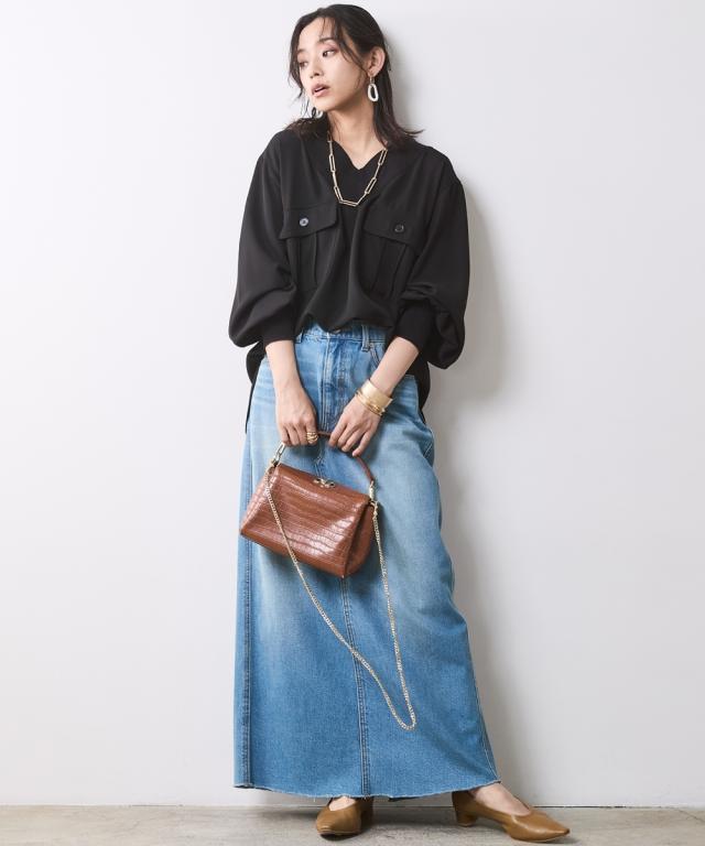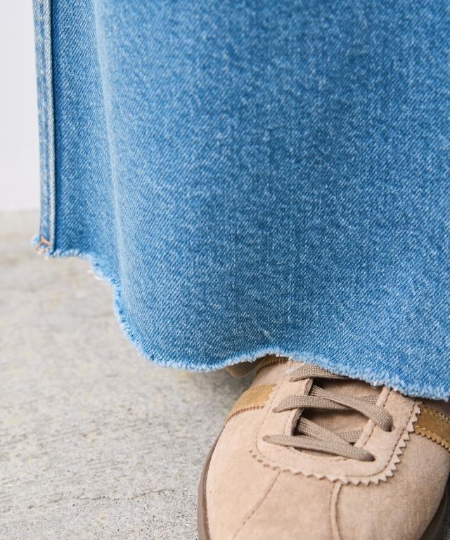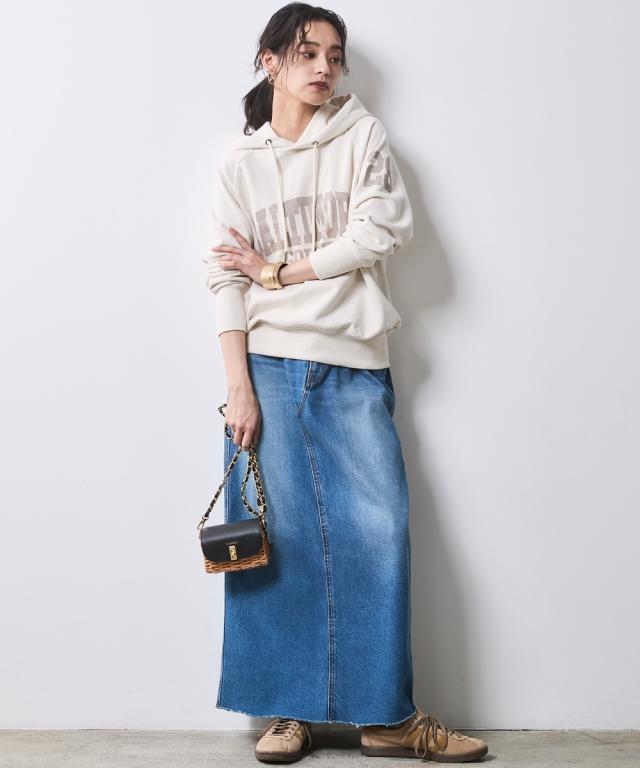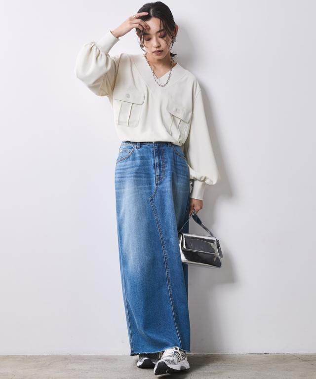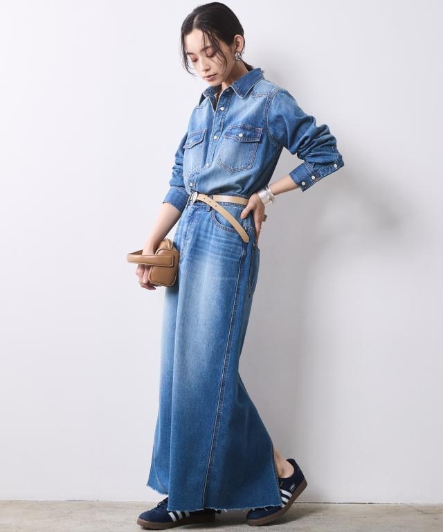 着心地抜群のデニムマキシスカート。 ■デザイン リメイク風デザインとヴィンテージ感を演出する加工が施されたデニム素材のスカートです。 体に程よくフィットするストレートシルエットが特徴で、スタイリッシュな印象を与えます。 後ウエストのゴム仕様と長めの後スリットで足さばき良く着心地抜群です。 ■素材 綿レーヨンの落ち感のある素材を使用しているのでソフトで肌触り良く、きれいなシルエットが出ます。 ■おすすめのスタイリング シンプルなデザインなので、どんなトップスとも相性が良く、日常のさまざまなシーンで活躍します。