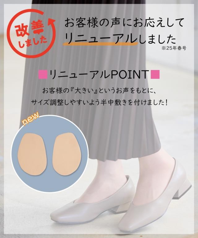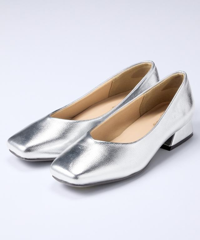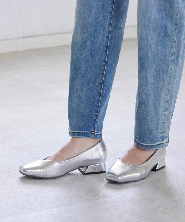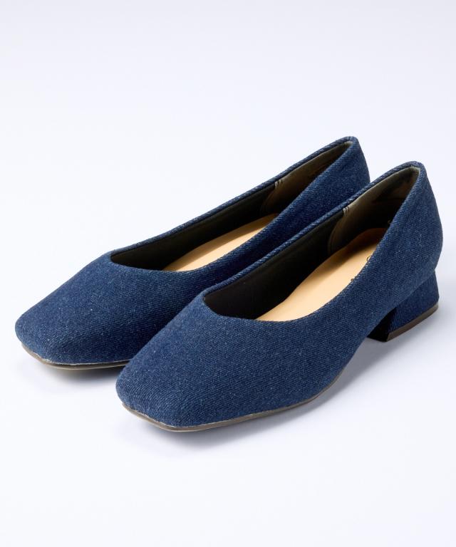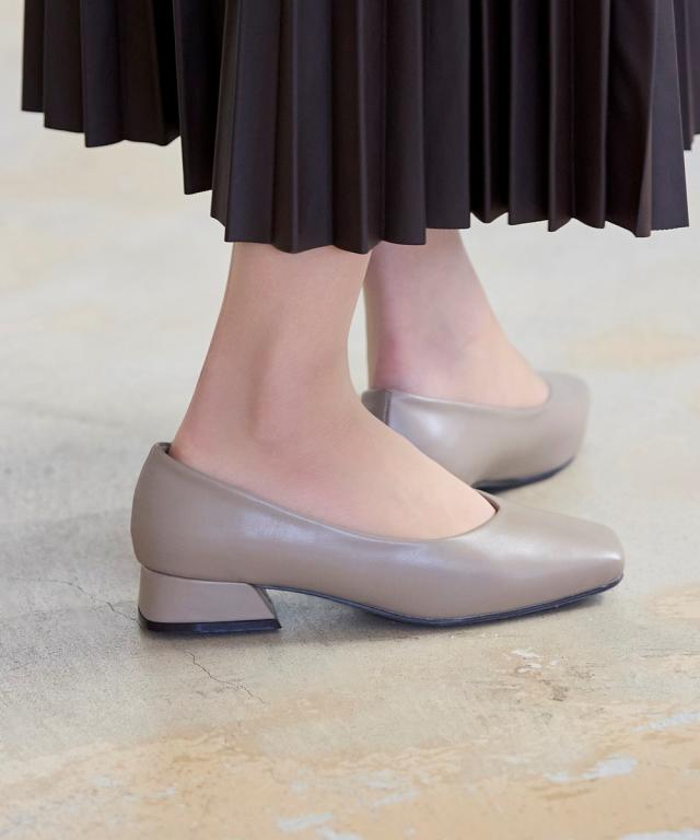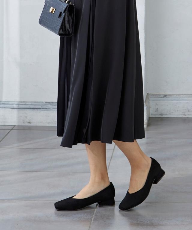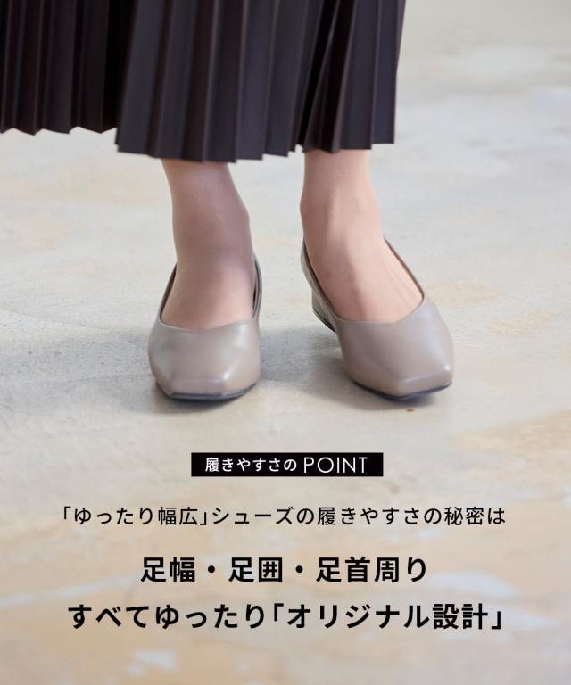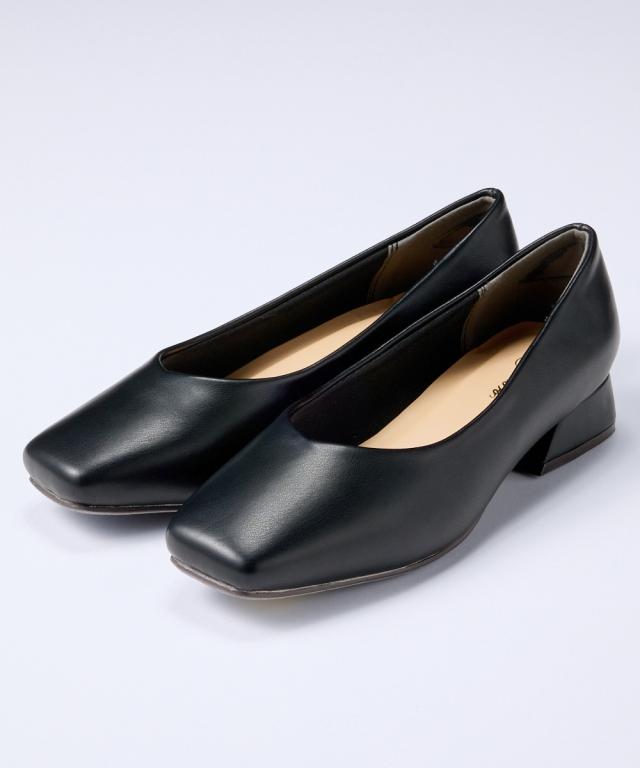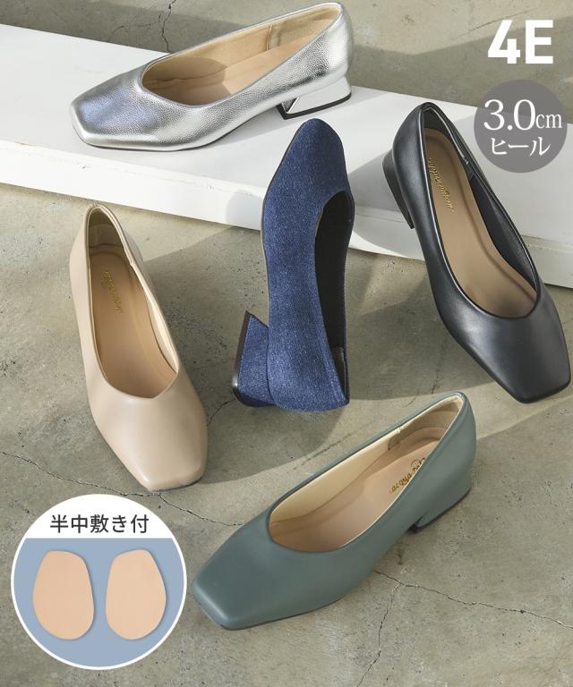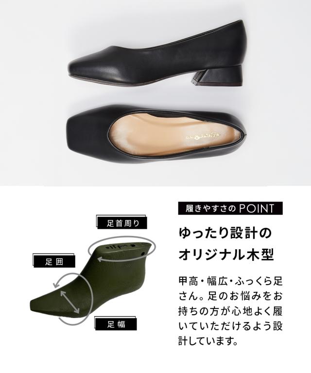 【ゆったり幅広】スクエアトゥローヒールパンプス(低反発中敷)(ワイズ4E)