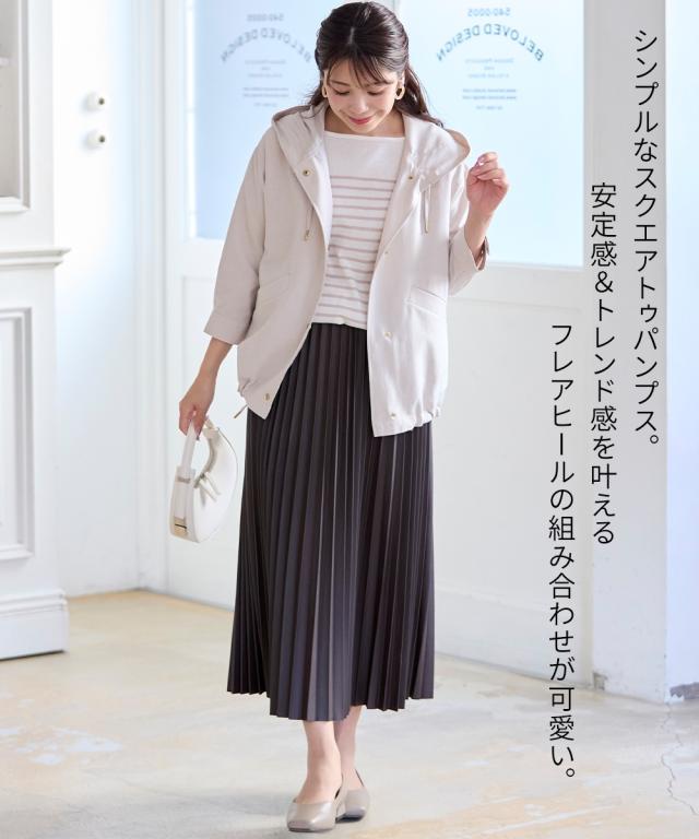 シンプルなスクエアトゥパンプスと、安定感×トレンド感を叶えるフレアヒールの組み合わせが可愛い、一足で足元が決まるパンプスです。甲のカッティングは浅すぎず深すぎない絶妙なバランス。さらに履き口をややVカットにすることで自然なすっきり見せを叶えます。 ■ポイント ・かかとの内側はジェルタイプの滑り止め付き ・足をしっかりキャッチし、パカパカしにくい仕様 ・内側はメッシュ素材で優しい足当たり ・約3cmのフレアヒールで、安定感がありで自然にキレイ見せ ・低反発中敷入りで優しい履き心地 ・疲れにくく歩きやすいのもうれしいポイント ・幅広いコーデに使える万能な一足 ・季節問わず一足あれば大活躍間違いなし ・甲高・幅広・ふっくら足さんなど足のお悩みをお持ちの方が心地よく履いていただけるよう設計 【ニッセンオリジナルの大きいサイズ規格】 本当に合う靴に出会った事はありますか ニッセンの4Eは、靴底の幅を広げ、甲や足首周りもゆったりの独自設計。 靴のサイズにお悩みのお客様へ向けて、サイズが大きくてもバランス良くきれいに見えるよう企画したオリジナルシューズです。