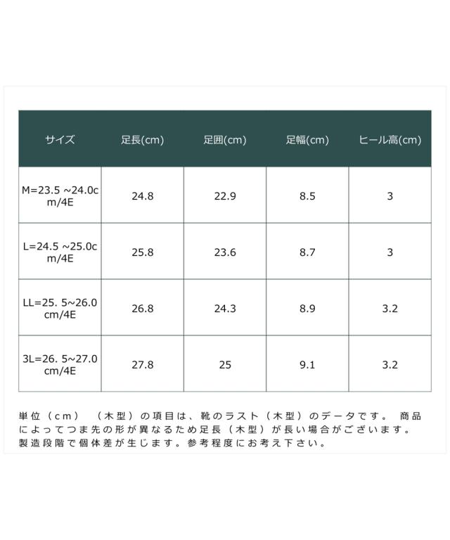 材質=【黒・シルバー・ダスティグリーン・グレージュ】合成皮革【デニムブルー】合成繊維 底材=合成底 ヒール=約3cm ワイズ=4E 重量=約250g(4E:Lサイズ片足) ※生産時期や素材などによって多少個体差があります。 ※デニムブルーの色の出方が多少異なる場合があります。 かかとにジェル状パッド付 サイズ調整用半中敷付 原産国:中国製