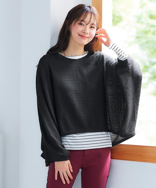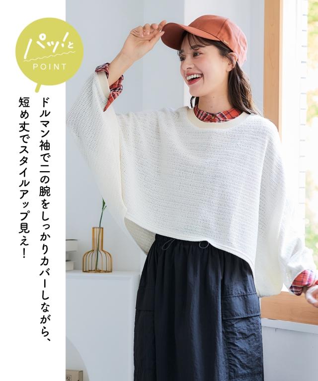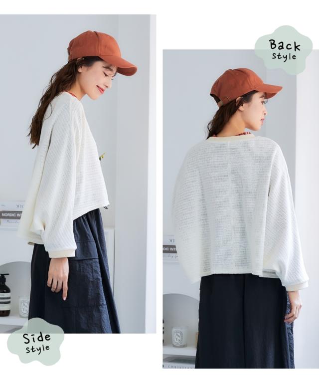 着るだけでサマになる!楽ちん可愛いドルマンラッセルメッシュトップス コーデいらずで着回し抜群! お洒落に見えちゃうのに、着心地は楽ちん 忙しい朝も、パッと着るだけでサマになるから、 ストレスフリーで過ごしたいあなたにピッタリです。 ■デザイン ワイドなドルマンシルエットが、体型カバー効果抜群! 気になる二の腕やお腹周りをさりげなく隠してくれるので、自信を持って着こなせます。 さらに、トレンドのメッシュ素材で、軽やかで涼しげな印象に。 カジュアルだけど、こなれ感も演出できるから、デイリー使いに最適です。 ■素材 通気性の良いメッシュ素材を使用しているので、 暑い季節でも快適に過ごせます。 さらっとした肌触りで、着心地抜群! 洗濯機で洗えるので、お手入れも簡単です。 ■おすすめのスタイリング ・デニムパンツと合わせて、カジュアルだけど大人っぽい着こなしに。 ・スカートと合わせて、フェミニンなスタイルに。 ・レギンスと合わせて、スポーティーなスタイルに。 どんなボトムスとも相性抜群なので、着回し力も抜群です。