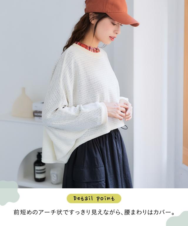 品質=[本体]ポリエステル100% [リブ部]ポリエステル64%・綿33%・ポリウレタン3% この商品は着丈に前後差のあるデザインです。着丈はネックポイント〜前中心・ネックポイントから後中心の寸法を記載しています デザイン上、全体的にゆったりとしたシルエットになっております。仕上がりサイズをご確認ください 洗濯表示:手洗い