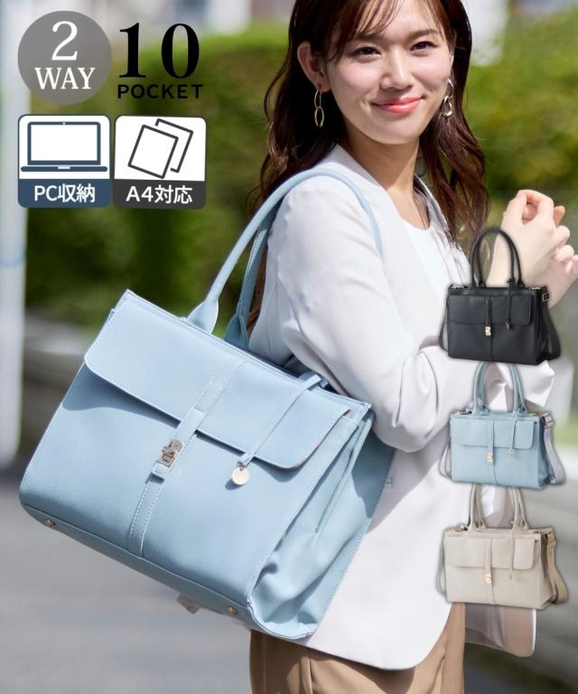 レディース 10ポケットフラップ デザイン 2WAY トート バッグ A4対応 PC 収納 対応 手提げ かばん かわいい おしゃれ ニッセン nissen