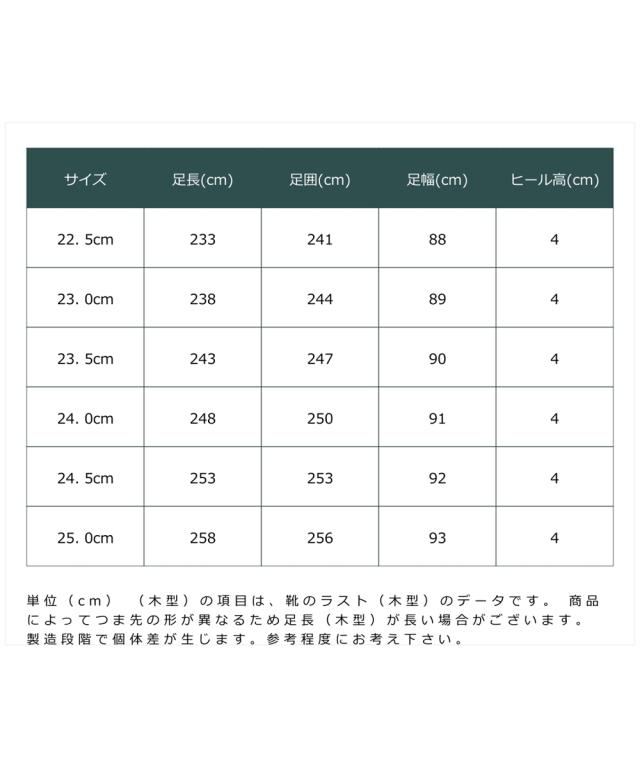 材質=合成皮革・合成繊維 底材=合成底 底の厚さ(後ろ)=約4cm ワイズ=3E 重量=約290g(24.5cm:片足) ※生産時期や素材などによって多少個体差がございます。 原産国:中国製 備考:単位(cm) ※(木型)の項目は、靴のラスト(木型)のデータです。 ※商品によってつま先の形が異なるため足長(木型)が長い場合がございます。 ※製造段階で個体差が生じます。参考程度にお考え下さい。