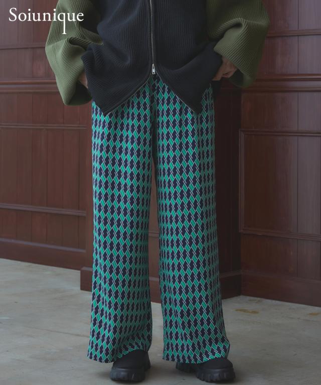 幾何学柄オーバーシルエットワイドパンツ [Soiunique]