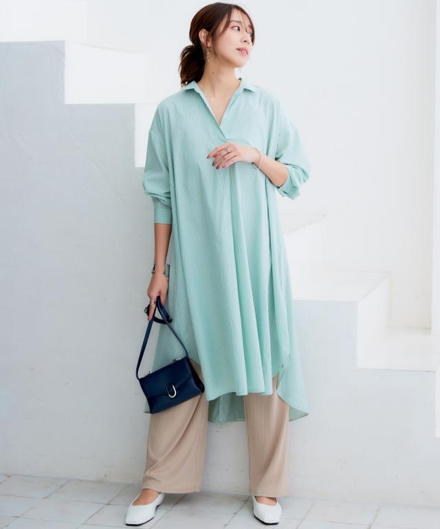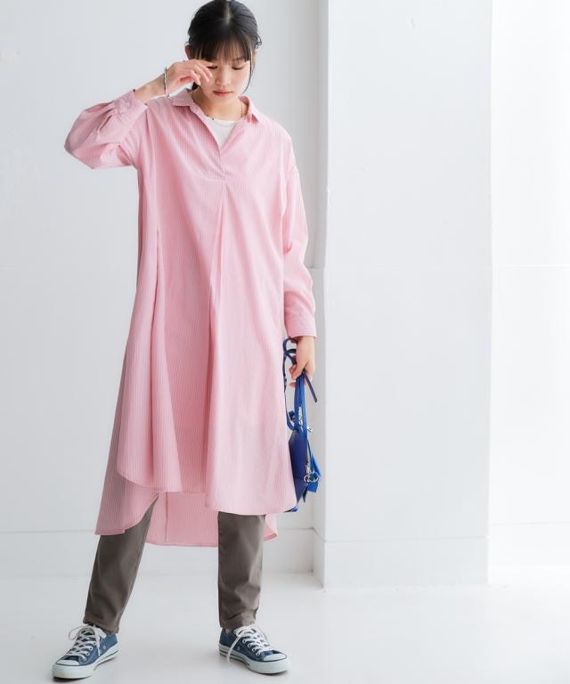 オーバーサイズブロードスキッパーシャツワンピース(UVカット・イージーケア)