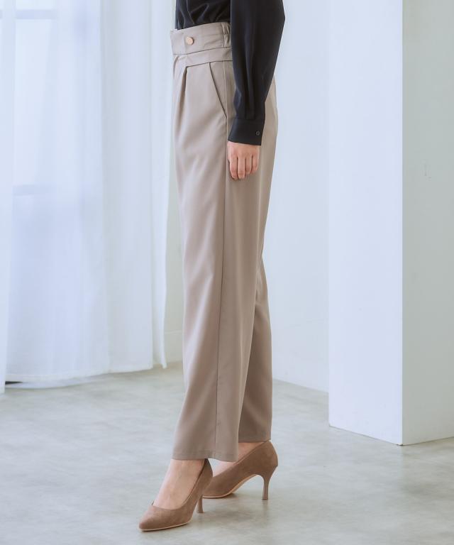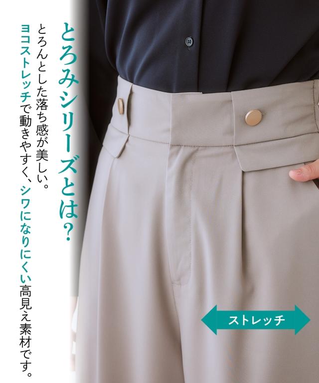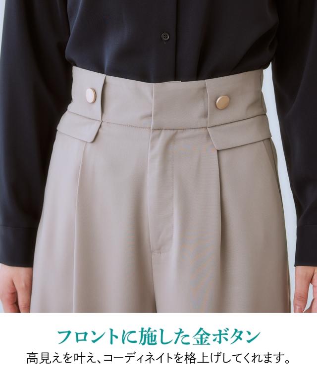 【しわになりにくい・ストレッチ】ハイウエスト金ボタンパンツ(とろみシリーズ)