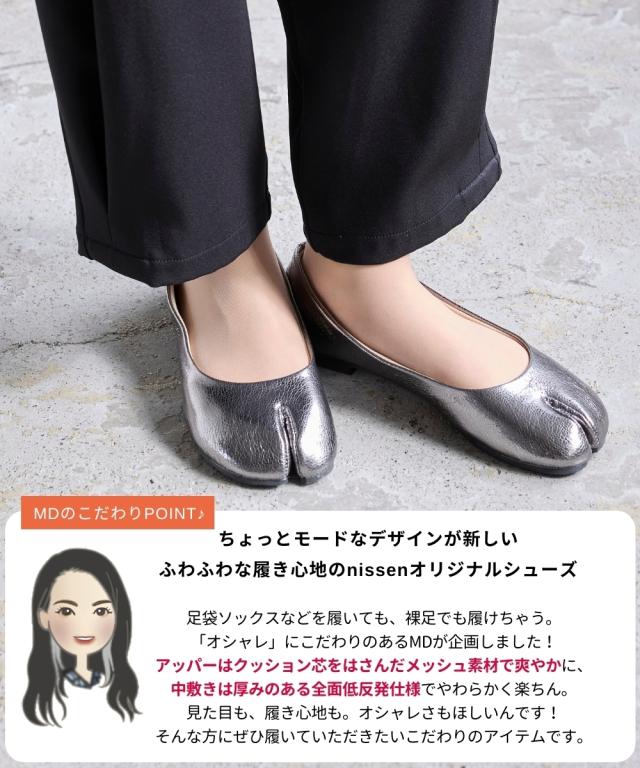 レディース やわらか足袋風 デザイン フラット パンプス 低反発中敷 ワイズ3E 靴 シューズ 24.5/25cm ニッセン nissen