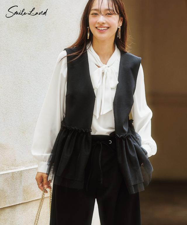 〜上品なチュール使いで、いつものコーデを格上げしてくれるベスト〜 ■デザイン 可愛らしさと大人っぽさを兼ね備えたレース使いのベストが登場しました。 ブラックはどんなコーデにも合わせやすく、上品な印象に。 ライトベージュは、優しいカラーで、女性らしい雰囲気に。 チュール素材が、軽やかで華やかな印象を与え、コーデのアクセントに。 前ホック開きなので、着脱も簡単です。 ■素材 動きやすくよく伸びる素材を採用! ベストだからあまりゆるゆるに着るのもバランス悪いのでジャストサイズで選んでもこの生地ならラクラクです! ■おすすめのスタイリング ワンピースやブラウスの上にも羽織れるので、着回し力も抜群です。 デイリー使いはもちろん、オフィスやパーティーにもおすすめです。