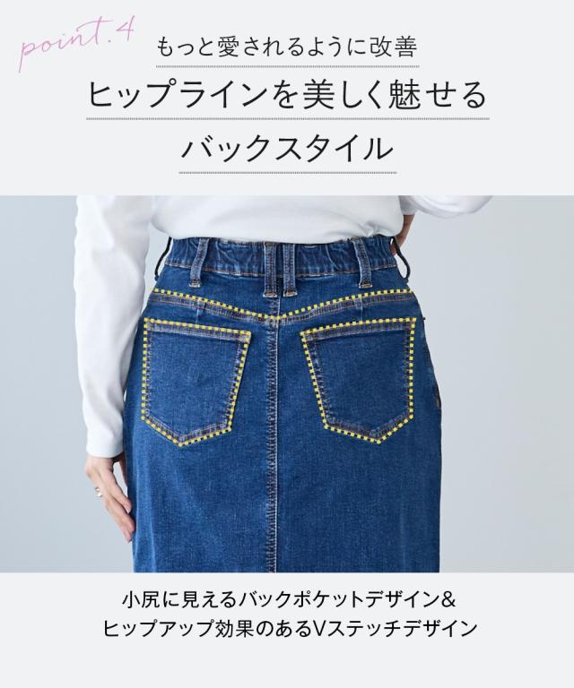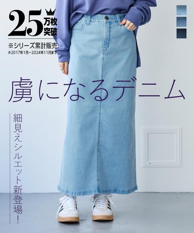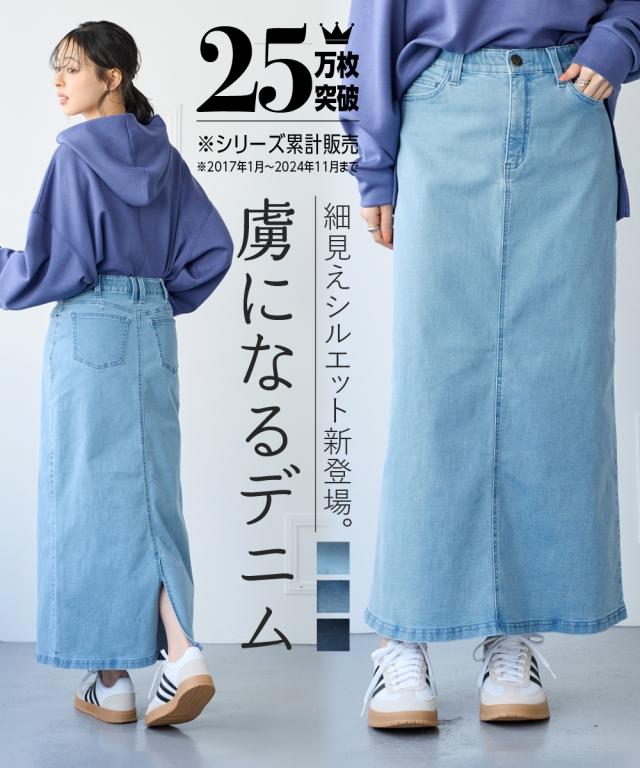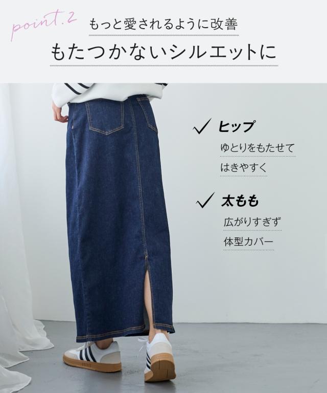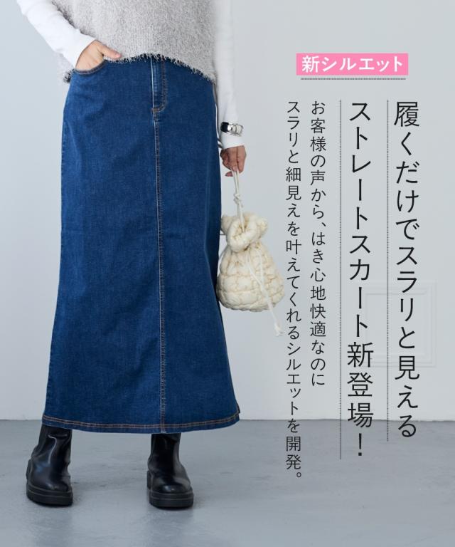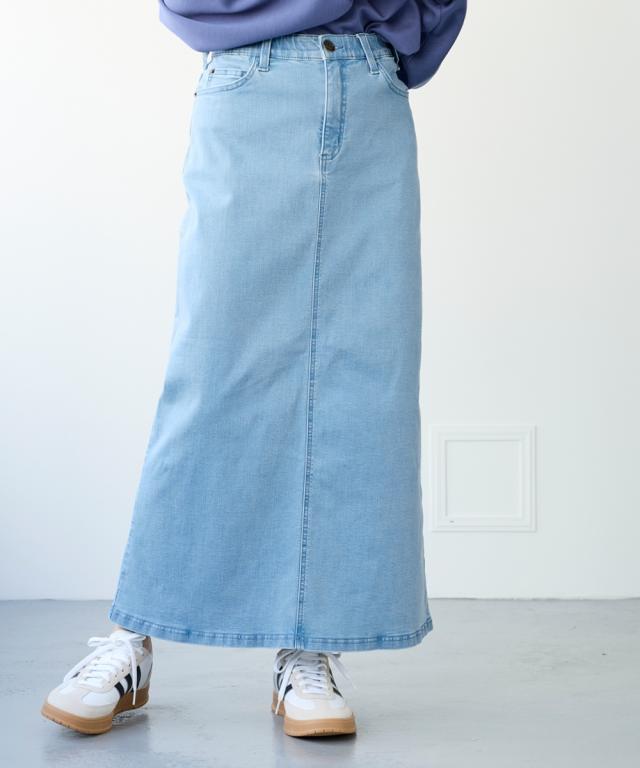 すごのびストレッチデニムストレートロングスカート(ゆったりヒップ)