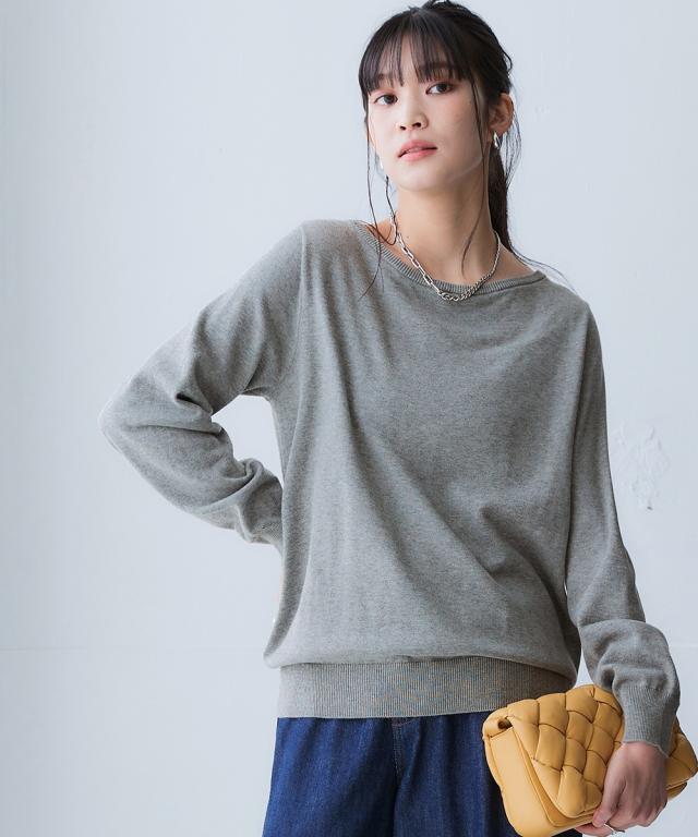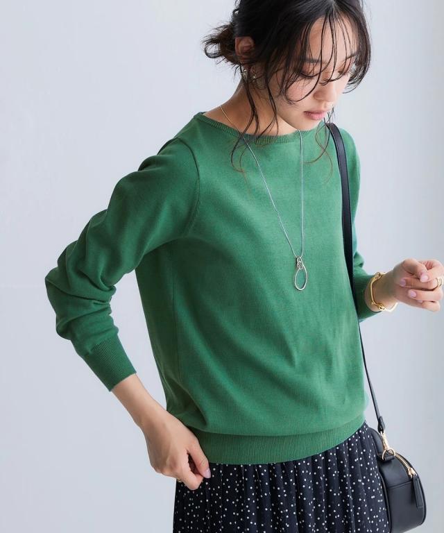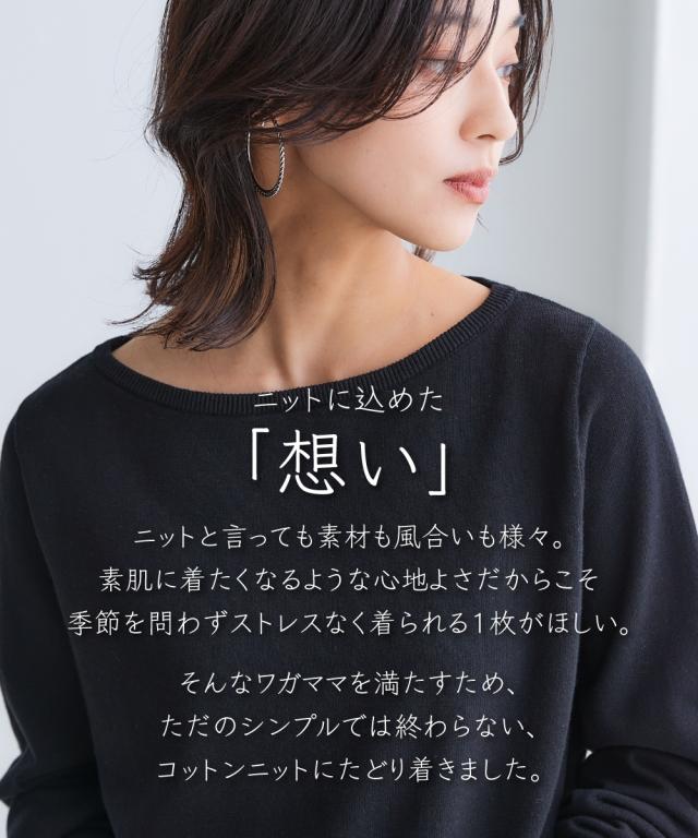 大人気の綿100%ニットシリーズ!素肌に着てほしい、デコルテがキレイに見えるボートネックニット。 サラッと肌触りが心地いい綿100%ボートネック長袖ニットがお客様のお声にお応えしてリニューアル。 洗濯機で楽に洗える&UVカット機能もうれしいポイント。 ■デザイン きれいめにもカジュアルにも合わせやすく、季節の変わり目にも使いやすいボートネックニットです。 優しい着心地と飽きの来ないデザインが季節をまたいで大活躍。 どんなシーンにもマッチする、シンプルながら洗練された1枚です。 ボートネックは襟元が横に広く開いていることで、デコルテラインをきれいに見せてくれ、首周りがすっきり見せが叶います。 衿のヨレが気になるとのお声にお応えして、ヨレにくく、見た目もスッキリ見せできるリブの袋仕様のネックデザインに改良しました! ■素材 優れた吸水性&吸湿性で、素肌に着てほしいほど優しい肌触りの綿100%。 厚みを抑えた程よいケージで編み立てた、さらりとした優しい風合いが自慢のお肌に優しい綿100%ニット。 敏感肌の方にもおすすめのオールシーズン使える素材です。 洗濯機洗いOKもうれしいポイントです。 UVカット機能付き。 ■おすすめのス