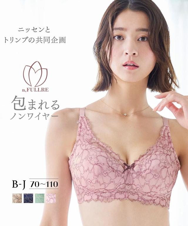 人気のフルカップブラに待望のノンワイヤーブラジャーが誕生しました!ワイヤー入りブラジャーと比較しても負けない美しいバストシルエットに仕上がりましたので、今までノンワイヤーだと不安だな・・・と思っている人にもぜひ試してほしい!ブラジャーです。カップ上辺のゴムが胸元にフィットし、バストのパカパカ浮きを防止し裏面のリフトアップパネルがバストを寄せ、ノンワイヤーなのに美しいバストラインを作ります。色味はデイリーで使いやすくやさしい仕上がりとなっております。心地よくなれるナチュラルなバストをメイクするニッセンの超ロングセラーのフルカップ「n,FULLRE」発売当初から約20年以上の進化を経てお客様のお声に向き合い、改良を続けてきたこだわりのシリーズ。エヌフルレを着けて幸せな気分を感じてください n,FULLREが選ばれる理由 ・こだわりのカップ形状と素材選びで丸みのあるきれいなバストラインに・パカパカ浮きしない設計でしっかり包まれる安心感・大きいバストでも華奢見えするデザインで脇がすっきりキレイもっと楽なブラが欲しい!ワイヤーが痛い、など、リクエストの多かったノンワイヤータイプ新登場!こんなお悩みありませんか・脇肉がはみ