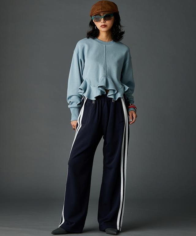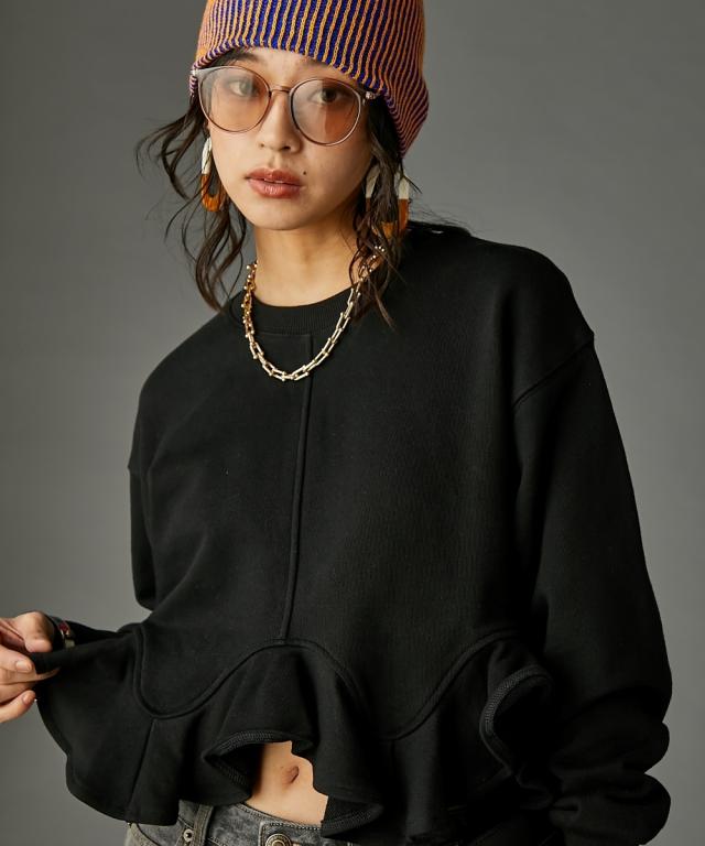 スポーティーでガーリーなショートスウェット。 ■デザイン 裏毛のカジュアルさにボリュームのあるラッフルフリルを合わせたデザイン。 ガーリーな印象のフリルディテールもショート丈にすることによりモード感をプラス。 ショート丈なのでスタイルのバランスが取りやすく足長効果が期待でき、スタイルアップが叶うアイテムです。 ■素材 肌触りのいい綿100%の裏毛素材を使用。 ■おすすめのスタイリング デニムにスニーカー合わせなどカジュアルなコーデはもちろん、ハーフパンツ+ブーツでトレンドライクな着こなしもおすすめです。