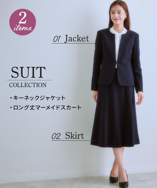 スーツ スカート レディース タテヨコ ストレッチ ロング丈マーメイド キーネック ジャケット 有 ビジネス セットアップ