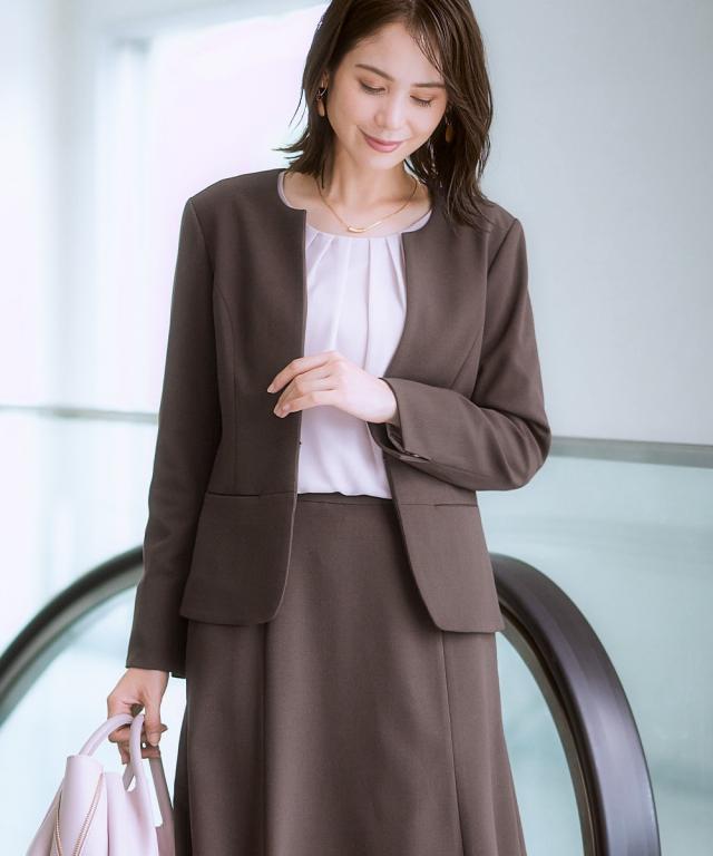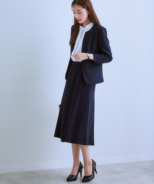 スーツ スカート レディース タテヨコ ストレッチ ロング丈マーメイド キーネック ジャケット + ビジネス セットアップ S/M/L ニッセン nissen