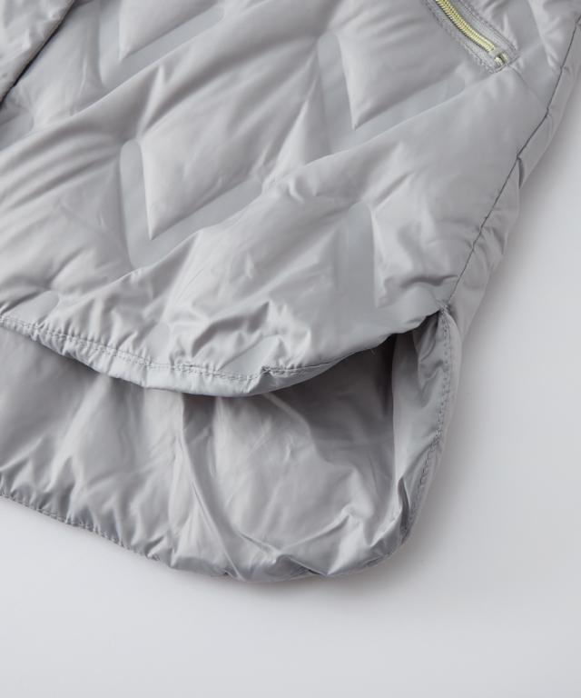 品質=ポリエステル100% 【裏地】ポリエステル100% 【詰物】本体:ダウン80%・フェザー20% 前立て・襟:ポリエステル100% 前ファスナー(スナップボタン6個) 左右ファスナーポケット付 ※後身頃は同柄です。 原産国:中国製 洗濯表示:ドライクリーニング