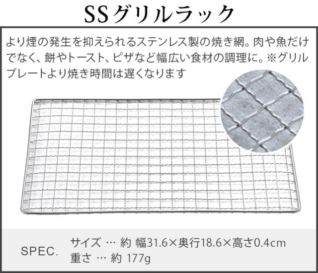 餅焼き網 電気 グリル ホットプレート 減煙 おしゃれ GLAMP. 超少煙グリル専用 SSグリルラック (本体別売り) グランプ SG01-SSGK 魚焼き網 焼き魚 2〜3人用 遠赤外線 焼肉 焼き鳥 ヘルシー スモークレス シンプル パーティー バーベキュー 角型 卓上 小型
