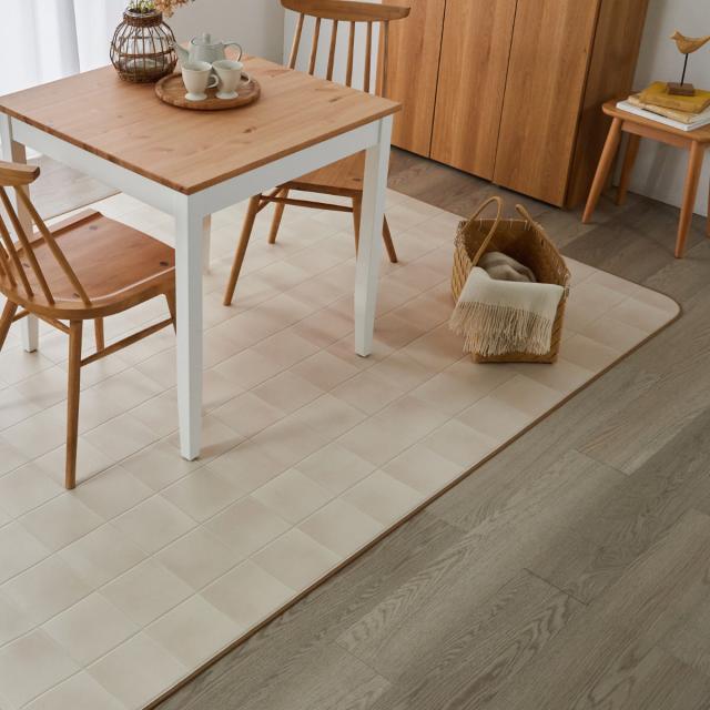 サラサラとした心地よいダイニングラグです。床やフローリングを傷や汚れからしっかり守り、大切な空間をいつまでもキレイに保ちます。シンプルなデザインでお部屋のインテリアにもなじみやすく、簡単に敷けるため、手軽に使い始めることができます。