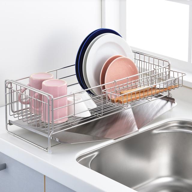 スライド式なので、洗い物の量に応じて便利に使えます。斜めトレーでシンクに直接流れていきます。