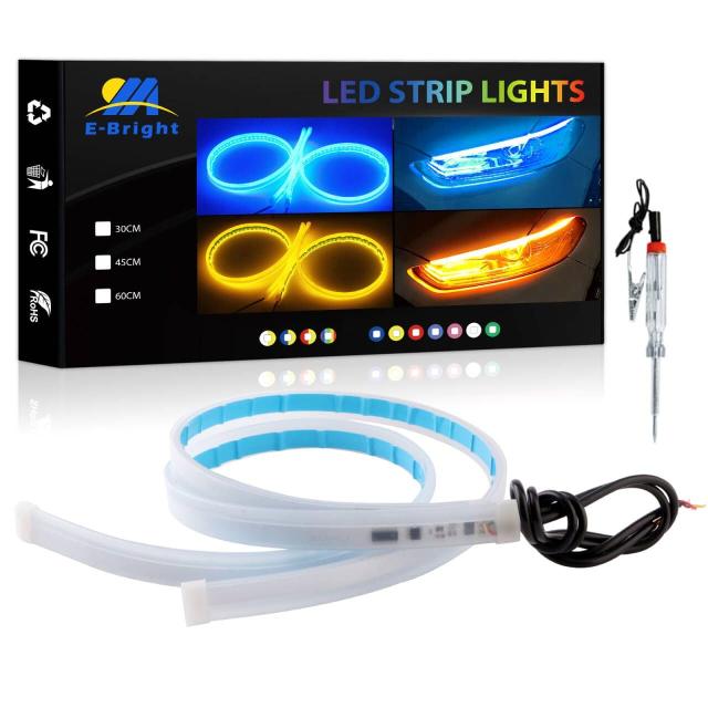 【愛車に高級感と彩りを!】シーケンシャル ウインカー 機能付き:このLEDテープはダブルカラーで、ブルー発光色はディライト(ポジション)として使用でき(ブルー色はテールランプ/ブレーキランプ用も可能です)、流れるアンバー(イエ ロー)発光色はウインカーランプとして使用できます。ご注意:取付の際に、バッテリーに繋がって先に点灯確認を行ってください。
