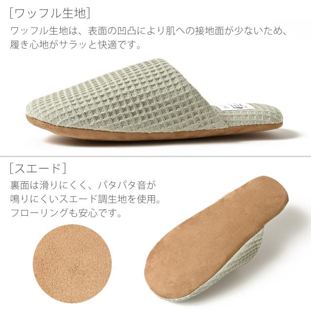 [洗える]汚れても丸洗いOK。洗うたびにワッフルがふっくら、清潔スリッパ習慣です。