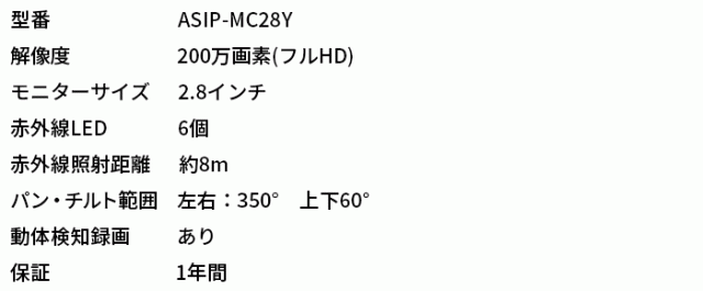 ASIP-MC28Y | ビデオ通話が出来る 見守りカメラ【防犯カメラ】【監視カメラ】【セキュリティーカメラ】【見守りカメラ】
