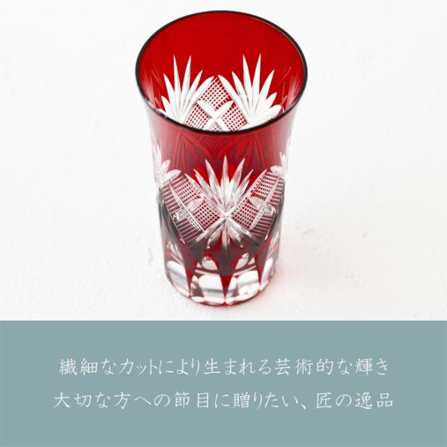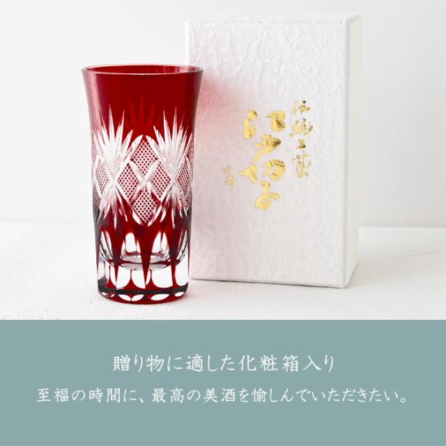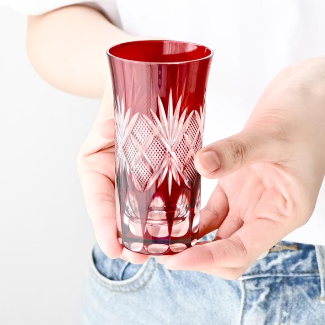 江戸切子 グラス 一口ビール 魚子 赤 TG98-01-1R タンブラー ビール 母の日 田島硝子 誕生日プレゼント おしゃれ 退職祝 昇進祝い 異動 還暦 賀寿 長寿祝い 父の日 敬老の日 ギフト
