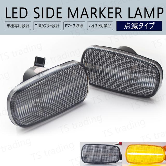 □点滅仕様のサイドマーカー ※本製品は「点滅タイプ」となります。 シーケンシャル仕様ではございませんのでご購入後の交換等は不可となります。 ご注意ください。 □ハイフラ対策済み ハイフラ現象の防止対策済み。 ハロゲンバルブからLEDへの交換の際に生じるハイフラ現象対策品。 ※前後社外LEDまたは社外ライトに交換されている場合、 相性によっては抵抗値の変更または追加が必要となる場合がございます。 □Eマーク取得 国際規格のEマークを取得した製品です。 ※車検の可否は検査官の判断次第となります。 ※車検対応を保証するものではございません。 □取り付け 純正サイドマーカーの『T10 ハロゲンバルブ』を取外し、当商品のT10ソケットをさすだけの簡単装着。 ネット上にも交換方法が動画などで出回っておりますので是非検索して参考にしてください。 ※LEDには極性がございますので点灯しない場合はソケットを逆に差し込んでください。 |