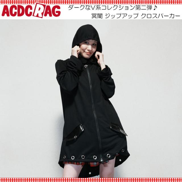 ACDC RAG エーシーディーシーラグ 冥闇 クロスパーカー ジップアップ 長袖 原宿 原宿系 ファッション V系 ダーク パンク ロック レディース ブラック pe-20455