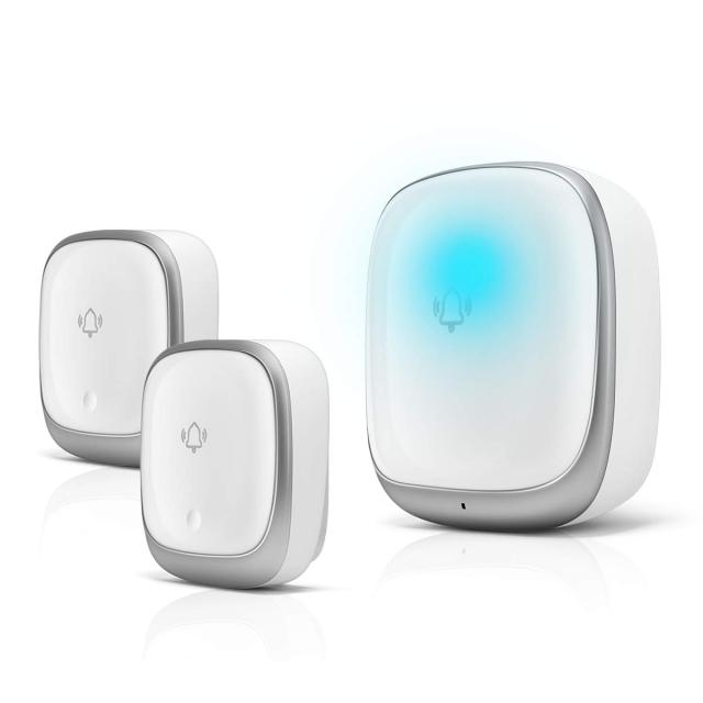 【7色の光と38曲選択 可能の音で呼び出し】玄関チャイムの発信機を押せば、呼出し音が鳴ると同時に、7色のLEDランプが点滅してお知らせします。老人か耳の不自由の方に大変便利です。メロディーと38曲からいただけます。光と音でお知らせ、お互いに便利なワイヤレスチャイム、緊急の時もすぐに気づけて安心できます。