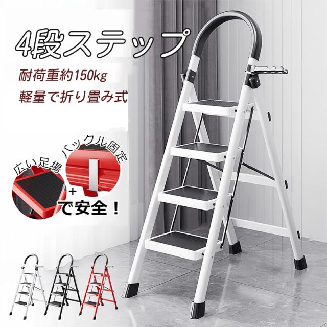踏み台 脚立 4段 アルミ 折りたたみ ステップ台 おしゃれ 軽量 折りたたみ脚立 持ち手付き ステップラダー はしご 梯子 ステップ 大掃除 洗車台 家庭用