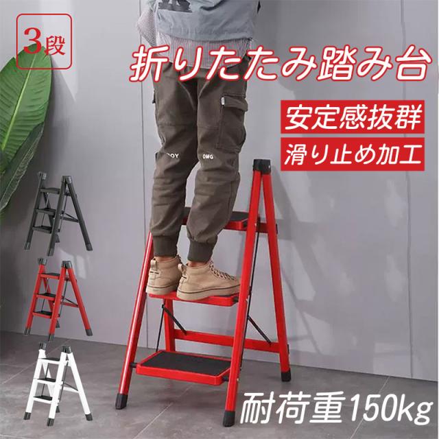 踏み台 脚立 折りたたみ おしゃれ 3段 ステップ台 折りたたみステップ ステップラダー ステップスツール 棚 大掃除 洗車台 はしご 梯子 滑り止め 持ち手 手すり