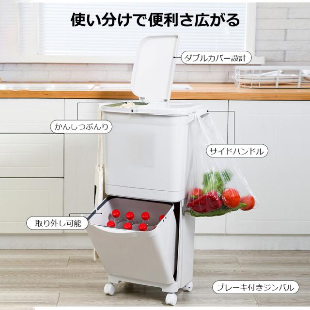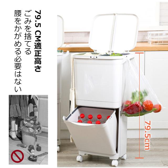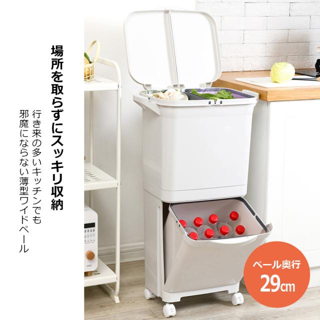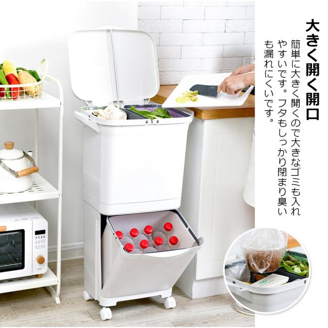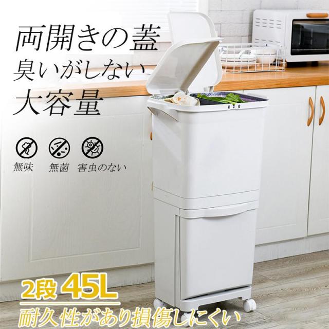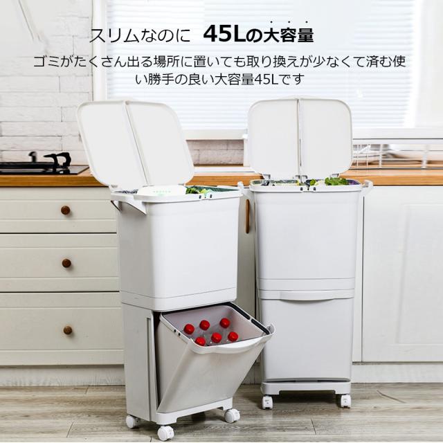 ゴミ箱 45リットル 分別 キッチン スリム 45L袋 おしゃれ フロントオープン ダストボックス 積み重ね シンプル 大容量 ふた付き 縦型 カウンター