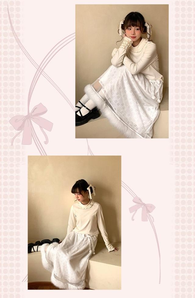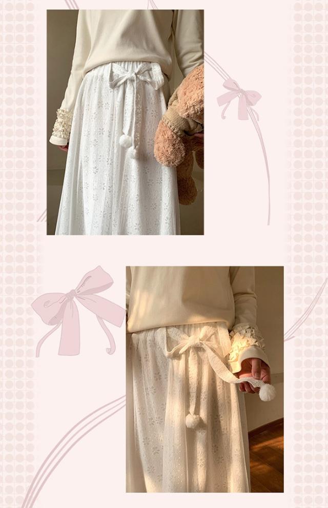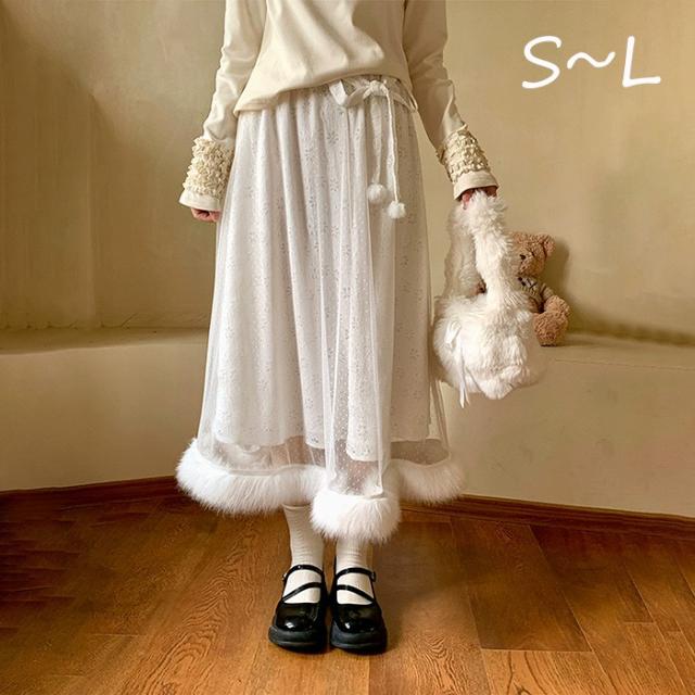 スカート ロング丈 レディース Aライン ゆったり レース 通学 秋冬 可愛い 学生 ジュニア ロングスカート カジュアル ホワイト エレガント 通勤 オフィス コーデ 膝下 レディーススカート 女子 dd040lclcm5