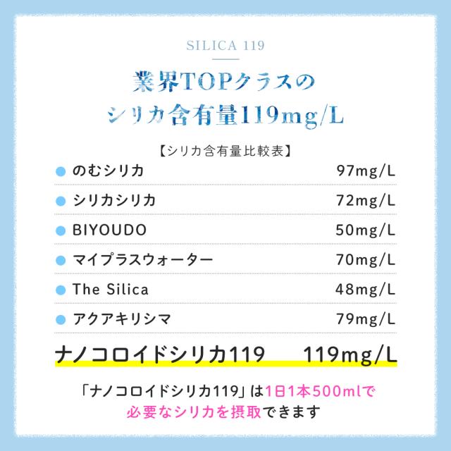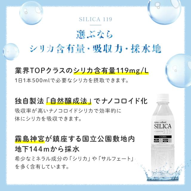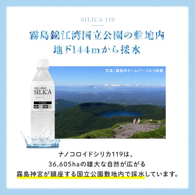 ナノコロイドシリカ119 [500ml 24本]【シリカ 含有量 業界 トップレベル/ナノコロイド 化で吸収率アップ/ミネラル豊富/とても飲みやすい中硬水】鹿児島県 霧島 国立公園で採水 500 シリカ水 天然水 ミネラルウォーター 水 セット