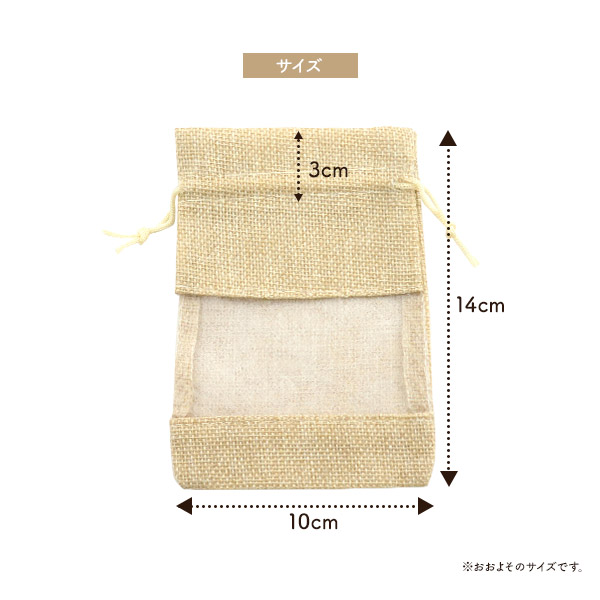 巾着袋 S 10×14cm リネン素材 ラッピング用 中身が見える 小窓付き 麻 ポーチ 袋 入れ物 小物 プレゼント ギフト包装 ミニサイズ 小さめ かわいい オシャレ シンプル 無地 アクセサリー ネックレス 指輪 ピアス お菓子 プチギフト 包装 まとめ買いOK