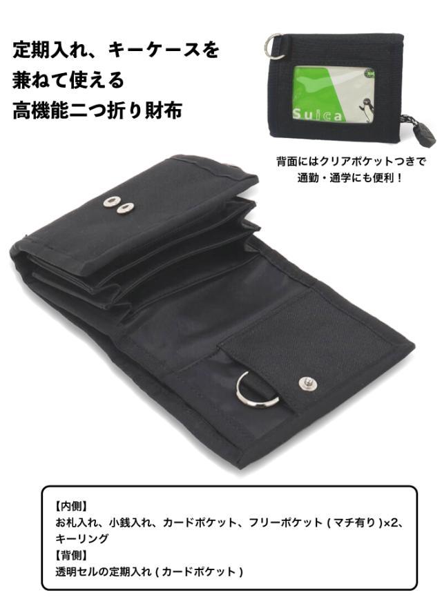 外側にはICカードや定期などが入れられるクリアポケット付きなので、通勤・通学にも便利!