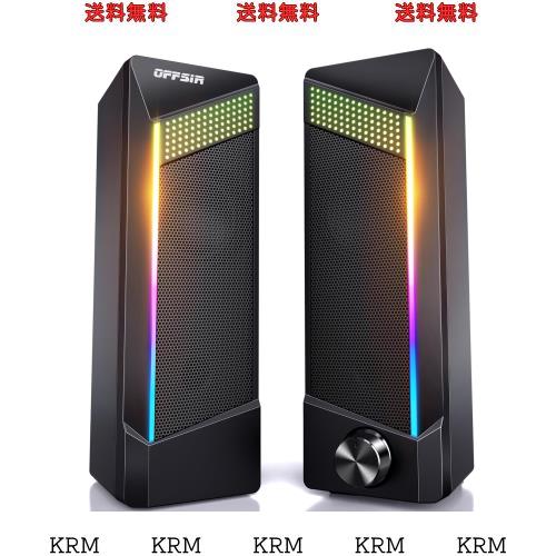 OFFSIR PCスピーカー ゲーミングスピーカー USB有線 RGBライト付き 2chステレオ 臨場感 3Dサラウンドサウンド AUX接続 3.5mm端子 プラ