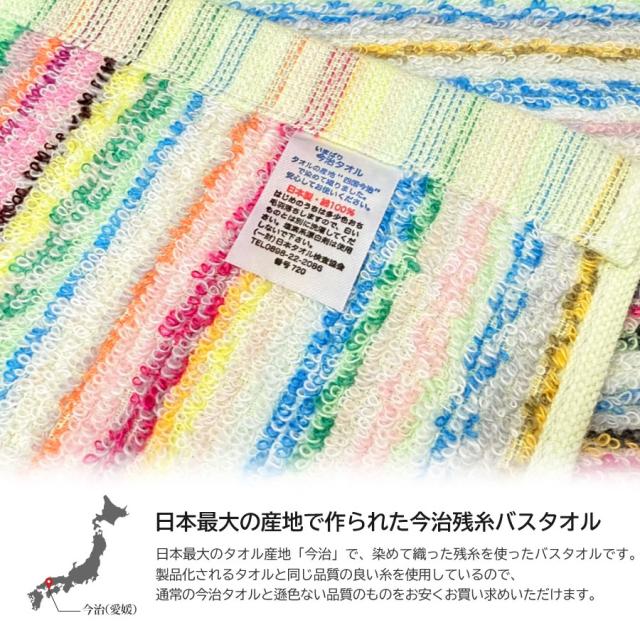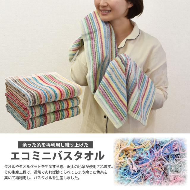今治産 残糸 ミニバスタオル 3枚組 バスタオル 40x104cm エコ 綿100% コットン エコタオル タオル 送料無料 ストライプ 色お任せ まとめ買い 吸水 速乾 肌に優しい パイル 送料無料