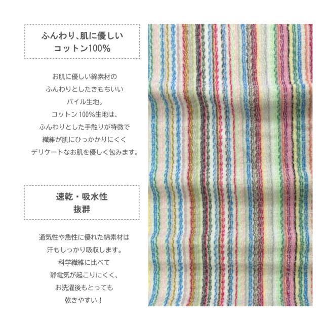 ・吸水性に優れ、小さなお子様や敏感肌の方にも安心してお使いいただける綿100%タオル。