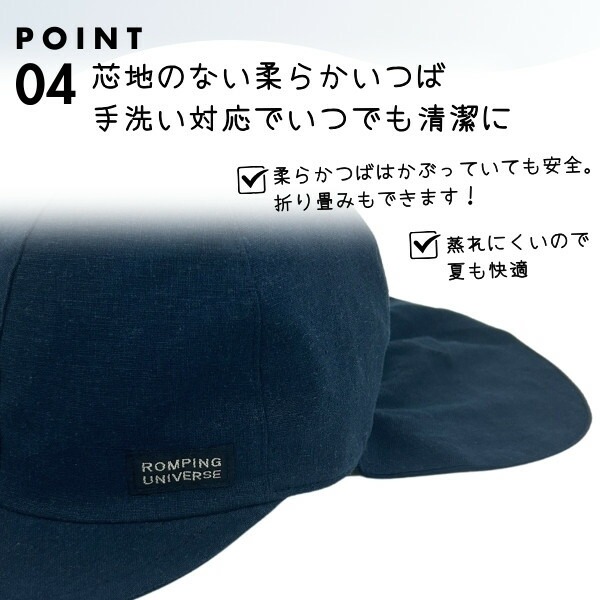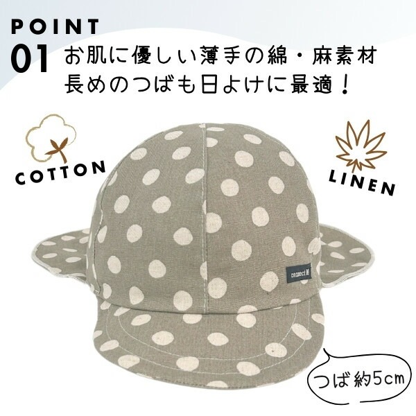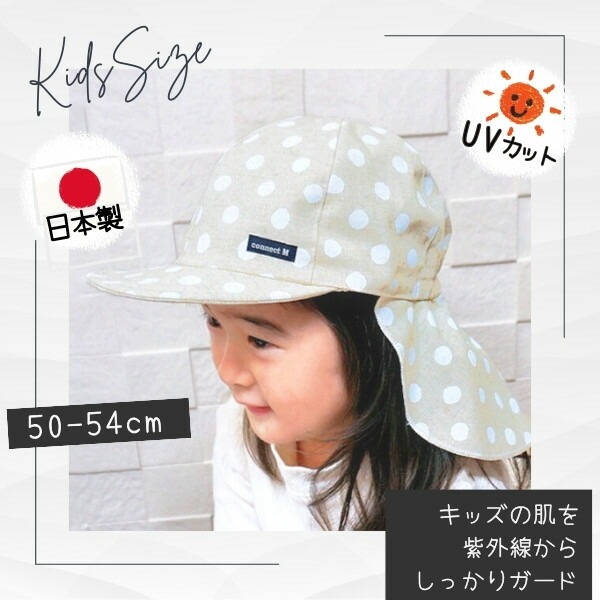 バオバブキャップ キッズ UVカット 50〜54cm 日本製 UV加工 日よけカバー あご紐付き 薄手 手洗い 綿 麻 さらさら 紫外線対策 UVケア 日よけ キャップ トドラーバオバブ キッズ帽子 子供用 男の子 女の子 通園 入園 春 夏 秋 帽子 connectM ROMPING UNIVERSE