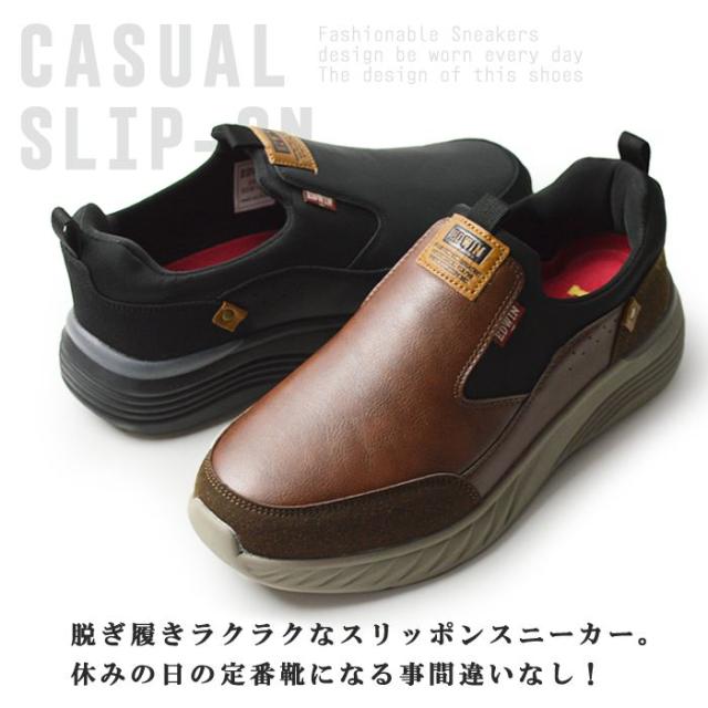 【送料無料】EDWIN エドウィン スリッポン メンズ スニーカー 軽量 カジュアルシューズ 防滑 幅広 3E EEE ローカット モカシンシューズ コンフォートシューズ スリップオン 男性 靴 紳士靴 メンズシューズ/2026新作 秋冬 トレンド