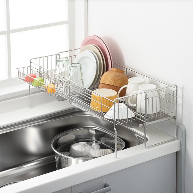 ヨシカワ シンクサイド 幅の広がる水切り ハイ 幅15×奥行57cm 送料無料 yoshikawa 水切りラック シンク キッチン用品 日本製 国産 ステンレス製 メーカー直送